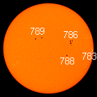 SUNSPOTS GALORE: What a difference a few days makes. Three days ago, the sun was almost blank, now it's peppered with sunspots. Two of the biggest are shown below, blossoming from invisible specks to planet-sized active regions:
