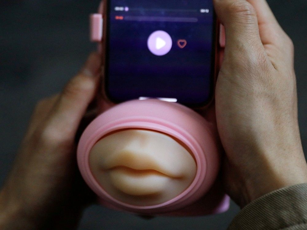 https://smartcdn.gprod.postmedia.digital/nationalpost/wp-content/uploads/2023/03/china-kissing-device-.jpg?quality=90&strip=all&w=288&h=216Jing Zhiyuan uses a remote kissing device 'Long Lost Touch,' as he demonstrates how to use it during an interview with Reuters, at his home in Beijing, China March 12, 2023. PHOTO BY TINGSHU WANG /REUTERS