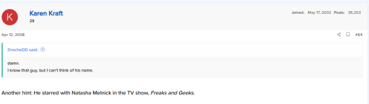 Another hint: He starred with Natasha Melnick in the TV show, Freaks and Geeks.