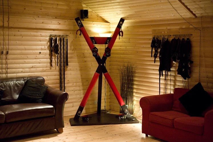 She had it, her St. Andrew's Cross, delivered today. Commissioned and built. Just another piece of furniture for this room. She had the men move the pentacle over slightly just enough so this one could fit right beside it.