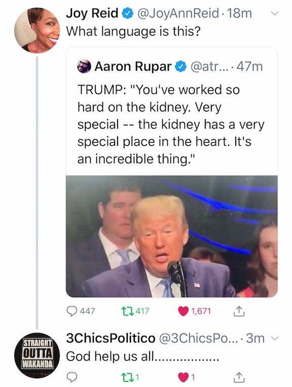 You know I thought Clinton's were top of the heap when it comes to whoring themselves out to corrupt business executives and dictators, but Crazy Biden and his son and former Sect. Kerry and his son got over a billion dollars from selling out to the Chinese. What a man. And in his rambling speech on China the other day in his effort to cover up for his bribes he did his usual mess of putting his foot in his mouth. We need more like him in the race. If you add the I.Q. up of the near thirty, including Oprah and Hillary, who "say" they are running in 2020 you have darn near as high a percentage as Warren has Native American Blood in her family. (We all know the truth is that none of them matter, it will be up to the rich fat cat's and the Russians, Iran and China who the Democrats run. Soros said he bought the Democratic Party and Hillary and Sanders both say they are not Democrats and really have no right to run on that party ticket, but the party no longer is so they can call it what ever they desire.)