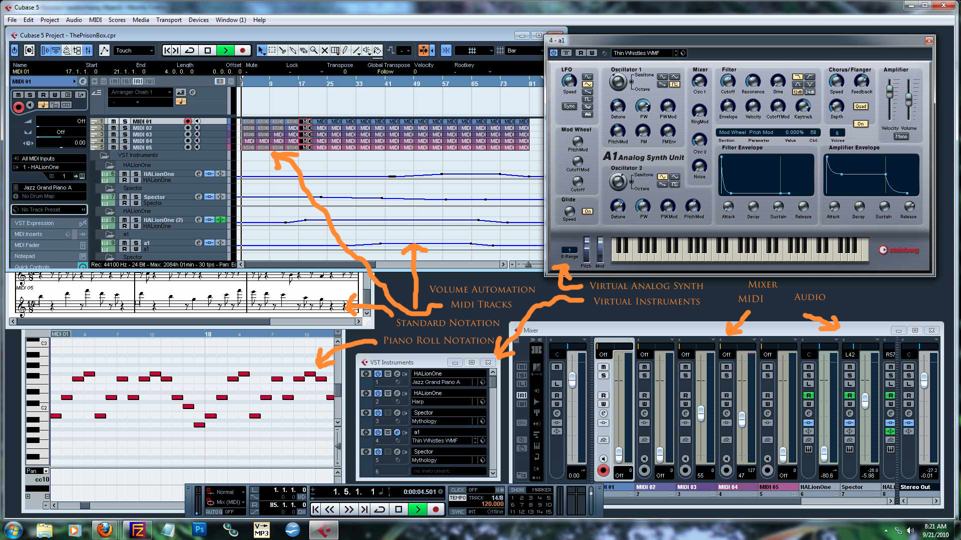 I've been using Cubase for more than 12 years. It is a rather expensive 'pro' music production system. It has several basic capabilities: